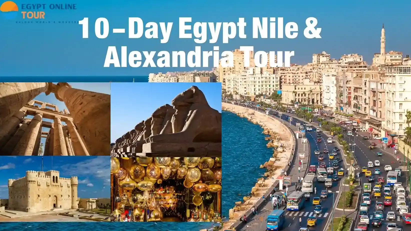 10-Day Egypt Nile & Alexandria Tour Is Egypt home to over 100,000 ancient sites? According to Egypt’s Ministry of Tourism and Antiquities ( egymonuments.gov.eg ), the country has an unmatched number of archaeological wonders. But what can you actually see in just 10 days? From the legendary Pyramids of Giza to the stunning Nile temples, this tour takes you deep into Egypt’s history. Prepare yourself for an adventure full of amazing sights!